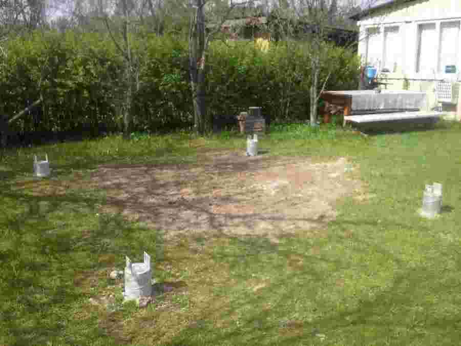 Опорные столбы должны располагаться на углах беседки и под несущими стенами через каждые 2 м. Если в качестве опор выбраны металлические трубы или обрезки бревен, отверстия под них готовят с помощью ручного бура. Диаметр отверстий на 10 см больше диаметра столба, а его глубина равняется примерно 70 см. Для столбов из кирпича или шлакоблока ямы копают лопатой, придавая им квадратную форму. Глубина таких ям не должна быть меньше 50 см.