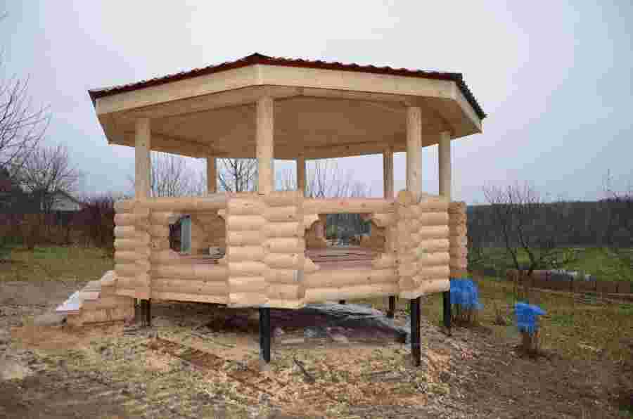 Процесс строительства зависит от особенностей выбранного материала, характера рельефа, типа грунта, конструкции будущей беседки. Однако в любом случае следует выделить несколько этапов!