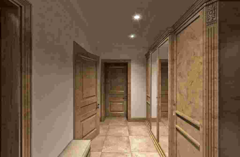 Простое решение — выбор дверей одного цвета. Особенно это актуально для полотен, которые будут устанавливаться в коридоре. Хорошо если общий интерьер выполнен в едином стиле, тогда подобрать одинаковые двери не составит труда. При выборе цвета полотен стоит опираться на стены, а, точнее, какого оттенка обои — двери должны либо контрастировать на фоне либо сочетаться с отделкой.