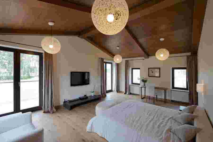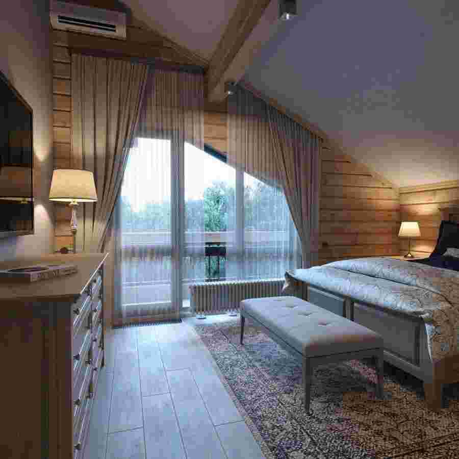 Интерьер спален в дачном домике может быть сделан в стилях: