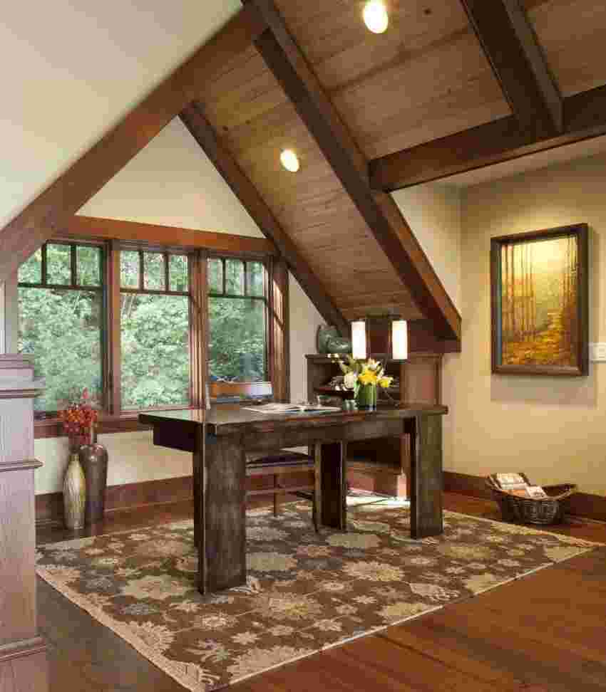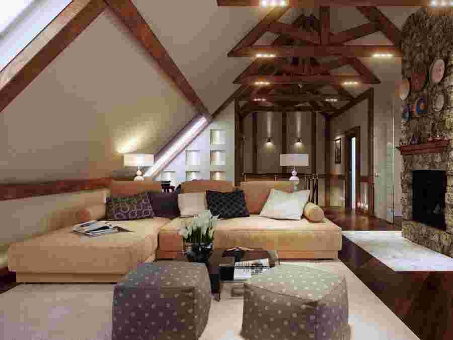 Для начала нужно убедиться, что со стороны кровли нет никаких протечек. Верх мансарды утепляют, укладывают пароизолятор, затем укладывают слой мягкого теплоизолирующего материала. А только потом все зашивают вагонкой или плитами из ДВП, ОСБ, ГПЛ или ГВЛ. Для пола можно подобрать такое покрытие, как и для нижних комнат. Иногда даже настилают листы ОСБ, а поверх него линолеум. Натяжной потолок в мансарде будет уместен тогда, когда кровля достаточно утеплена. Отделку подбирают похожую на те, какие обычно делают для спальни или гостиной.