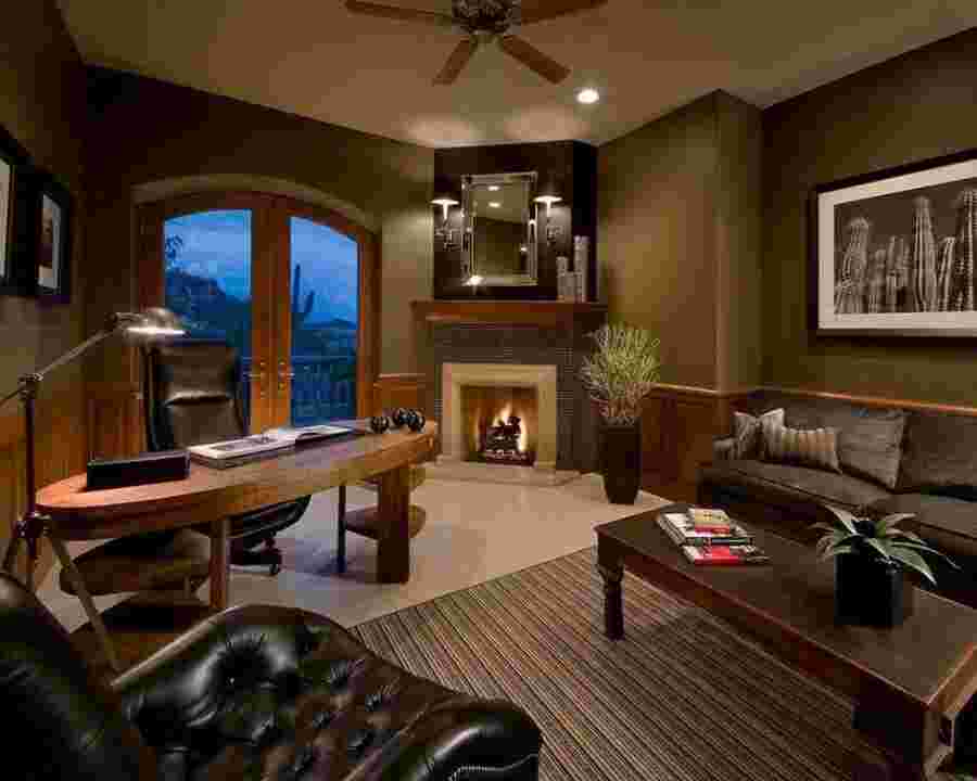 Но если же вы не желаете взваливать на себя уход за большим количеством интерьерных мелочей, то пойдите другим путем. Выберите темный цвет для одной или нескольких стен, теплые и яркие оттенки — для массивной мягкой мебели, и добавьте ко всему этому несколько скульптурных предметов декора, таких как, торшеры, напольные статуи, высокие комнатные растения, большие картины