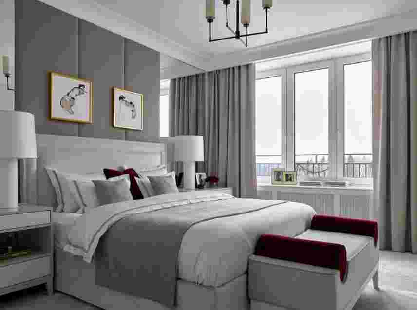 Цвета основных элементов спальни должны быть максимально нейтральными и не раздражающими взгляд. Идеальным вариантом считается использование серого, белого, бежевого, песочного, оливкового, голубого, сиреневого цветов. Такая гамма подойдет как для просторного, так и маленького помещения.