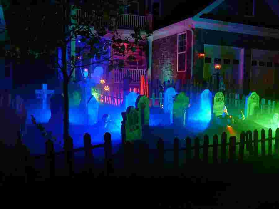 Лужайка во дворе будет красиво выглядеть под опавшими листьями: можно просто прекратить уборку за несколько дней до Хэллоуина. Из огромной кучи листвы пусть загадочно торчит ботинок – пусть кажется, что там мертвец. Очень жутко будут выглядеть надгробия – можно слепить их из всякой рухляди или разукрасить большие камни подходящего размера. Сюда же добавьте перекошенные кресты из палок.