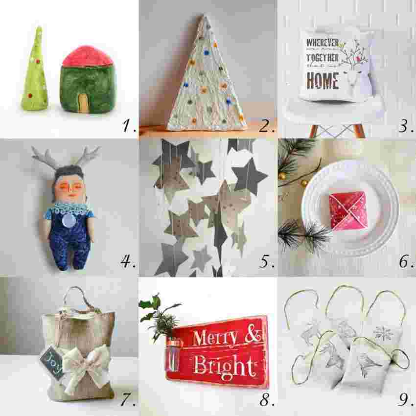 Декоративная подушка с нашитым вручную фетровым рождественским венком из омелы