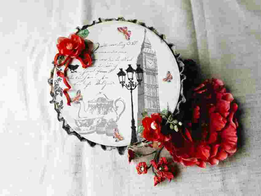 Это самый простой способ обновить надоевшую мебель. Можно применить технику декупаж, а можно просто приклеить аппликацию. Для работы следует подготовить открытки или приобрести специальные комплекты картинок в магазинах для творчества. Поверхность мебели для обезжиривания и лучшего сцепления затирают наждачной бумагой. Выкладывать картинки можно по заранее заготовленной схеме. Затем композицию следует покрыть несколькими слоями лака.