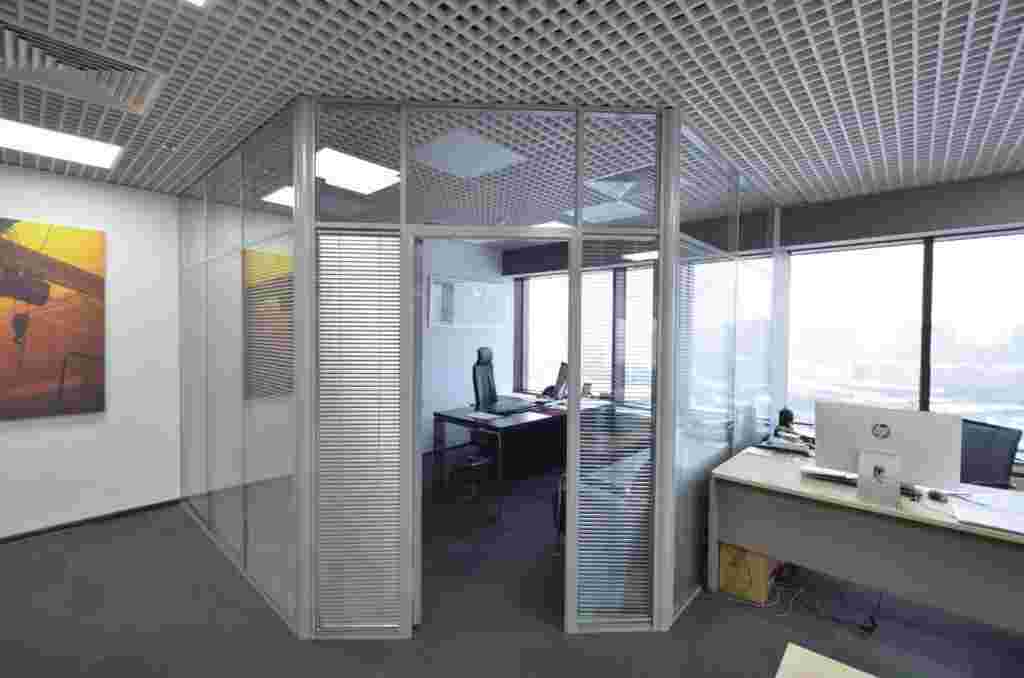 Перегородки — еще одна разновидность офисных конструкций, относящихся к мебели и оснащению. С их помощью можно разграничить помещение на отдельные сегменты или рабочие кабины, отгородить, обустроить пространство для офиса, кухни, конференц-зала. Перегородки могут быть светопропускающими, из закаленного стекла, пластика, оргстекла. Также их изготавливают непрозрачными, с заполнением из пластика, алюминия, звукоизоляционных материалов. Помимо этого, бывают комбинированные решения, при которых верхняя часть производится из прозрачного или пропускающего свет материала, а нижняя — из прочного алюминия или пластика. Такая система позволяет сохранять максимум света от естественного освещения, в то же время обеспечивать приватность рабочего места. Перегородки монтируются на каркасную систему с креплениями только к полу либо к полу и потолку, в зависимости от выбранной высоты. На практике они являются самым простым способом быстро организовать рабочее пространство и провести зонирование большого помещения.
