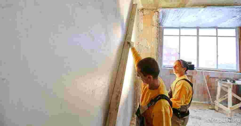 В соответствии с правильной технологией, штукатурные работы лучше проводить одновременно во всех помещениях квартиры. Лучше делать это после осадки строения — спустя год после окончания строительных работ. Не экономьте времени и материалов. Прежде чем наносить новый слой штукатурки, необходимо дать возможность предыдущему «схватиться». Только в этом случае все поверхности будут идеально ровными, а последующее покрытие (обои, фактурная штукатурка, краска или плитка) — без перекосов.