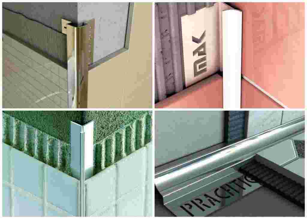 - Элементы могут быть разной длины, их потребуется подрезать на концах. Что касается толщины, как уже говорилось, уголок должен быть на один-два миллиметра больше, чем плитка. Если в помещении будет использоваться несколько видов кафеля, уголки подбираются под каждый индивидуально.