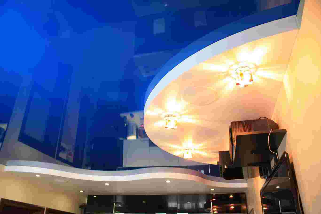 Натяжные потолки могут быть одноуровневыми или многоярусными и по желанию заказчика сочетать разные цвета и текстуры полотен. Иногда используют и дополнительные эффекты – фотопечать, имитацию дневного или ночного неба, воды и другие. Срок службы натяжных потолков – от 10 до 25 лет.