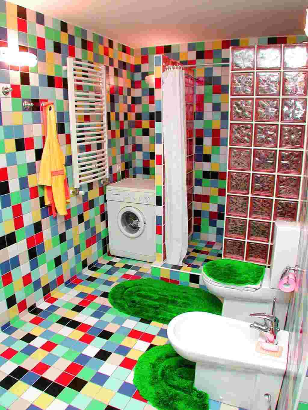 Для того чтобы в комнате не было ощущения сжатости, следует остановить свой выбор на использовании разноцветной плитки в интерьере маленькой ванной.