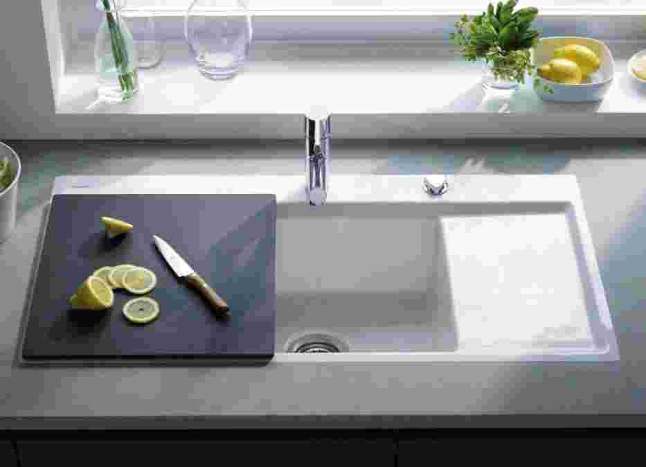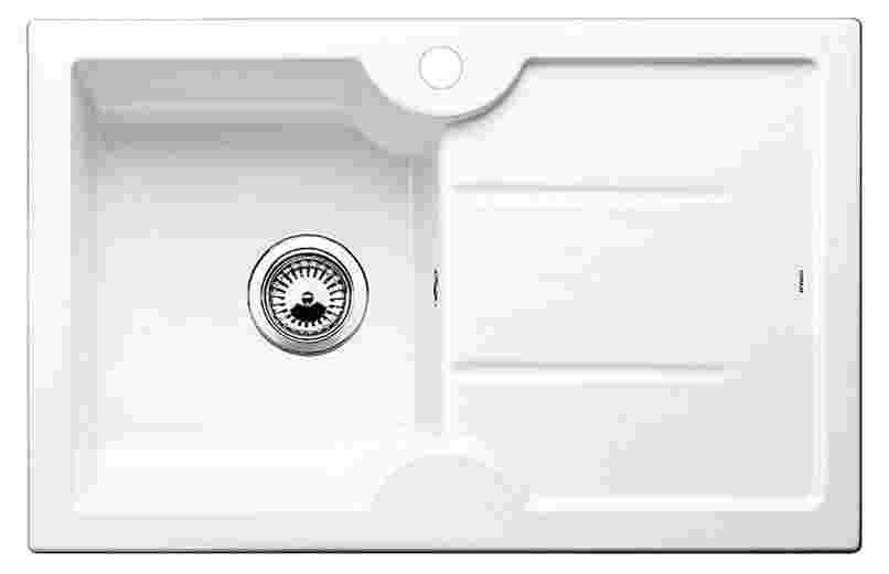 Blanco Idessa 45S – изделие обойдется в 31 200 рублей. Эта раковина выполнена из глянцевой белой керамики и имеет параметры 35 x 42 см. В линейке присутствуют несколько оттенков и габаритов моек для разных шкафов. Предусмотрено большое крыло с желобами для стекания жидкости. Также есть интегрированный перелив. При всей своей внешней простоте смотрится весьма эффектно и изысканно, благодаря продуманному дизайну и врезной встройке.