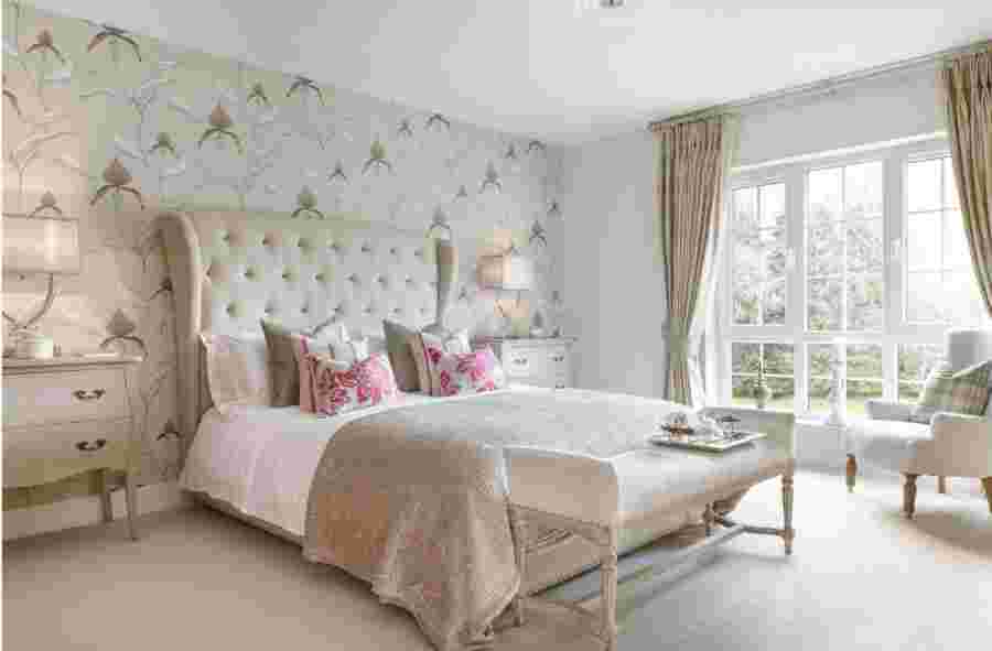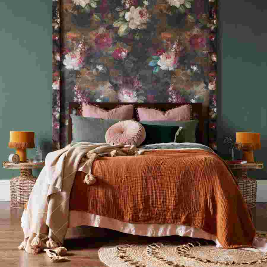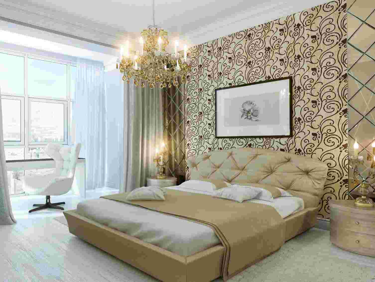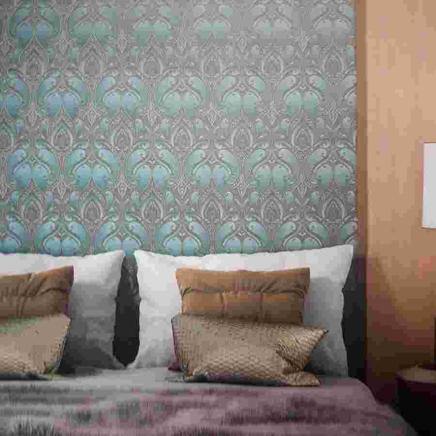 Яркие, бархатные обои в спальне