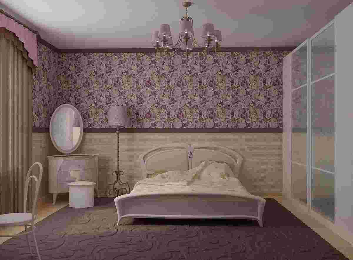 - 1/3 декорируется мелким узором, остальная часть комнаты остается в одном тоне;