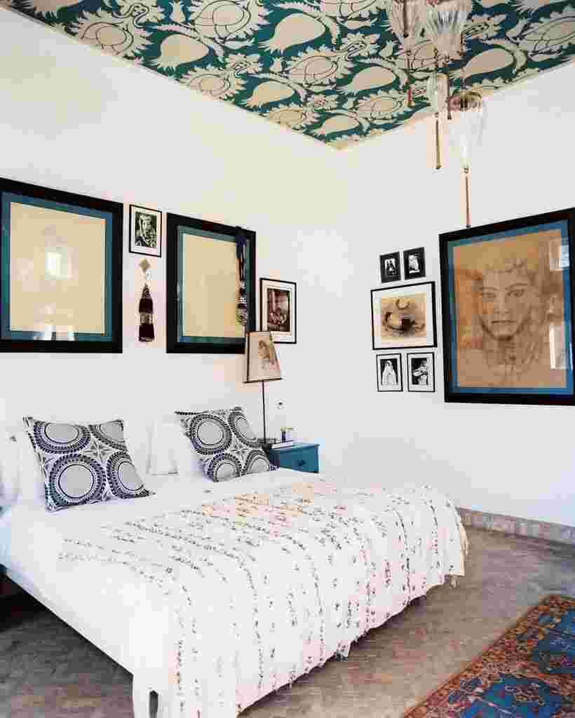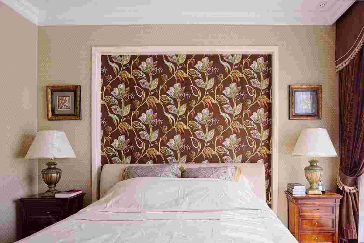 - Расположение крупных элементов декора или мебели на фоне стены с громоздким орнаментом.