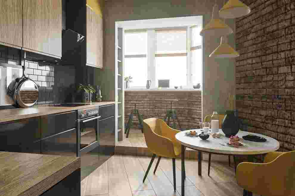 Если есть возможность согласовать перепланировку по присоединению лоджии к площади маленькой кухни, то стоит ей воспользоваться. Так удастся выделить место для обеденной зоны, барной стойки или небольшой зоны отдыха.