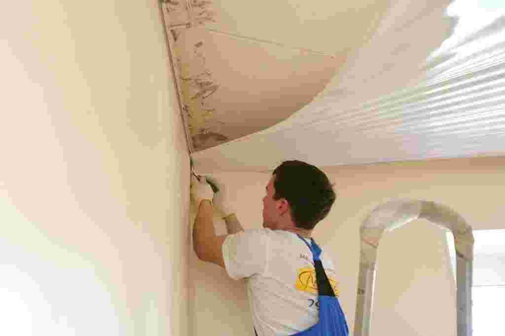 - Удаление отслуживших отделочных материалов (обоев, отслоившихся лакокрасочных покрытий, вздувшейся штукатурки и т.д.);