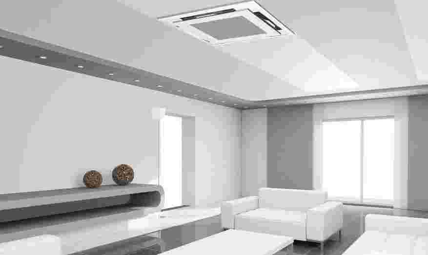 При работе кондиционера кассетного типа воздушный поток распределяется по четырём направлениям. Это даёт возможность системе быстро и равномерно прогреть или охладить достаточно большое помещение. Стоит учитывать, что в данном случае приобретение подобной системы неоправданно экономически для помещений меньше 50 квадратных метров.