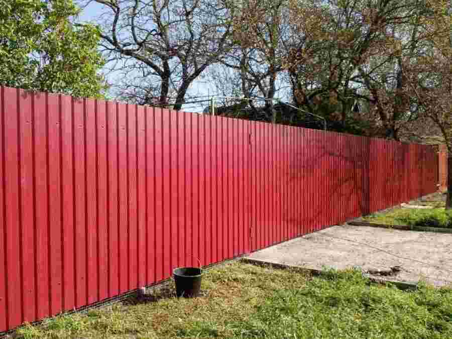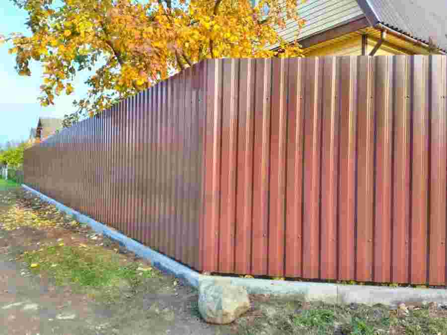 К преимуществам профнастила в роли забора с полным основанием относится: