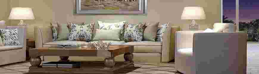 Если потолок гостиной оформлен натяжными потолками, образующими ниши, то это послужит идеальным вариантом для зонирования пространства.