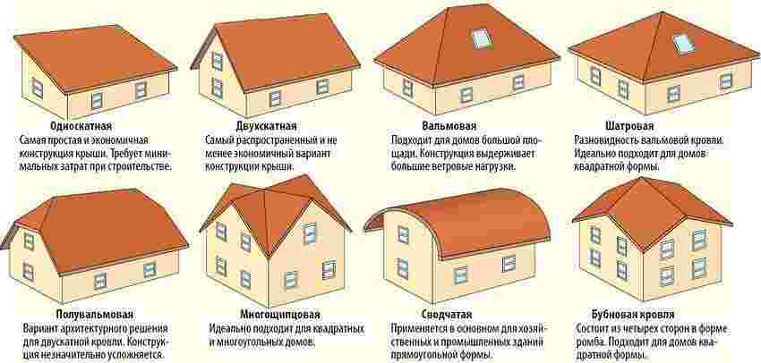 Перед тем как остановиться на оптимальном варианте крыши частного дома, следует ознакомиться с существующими формами и конструктивными особенностями кровель. Основными критериями, по которым классифицируют крыши различных типов, являются: