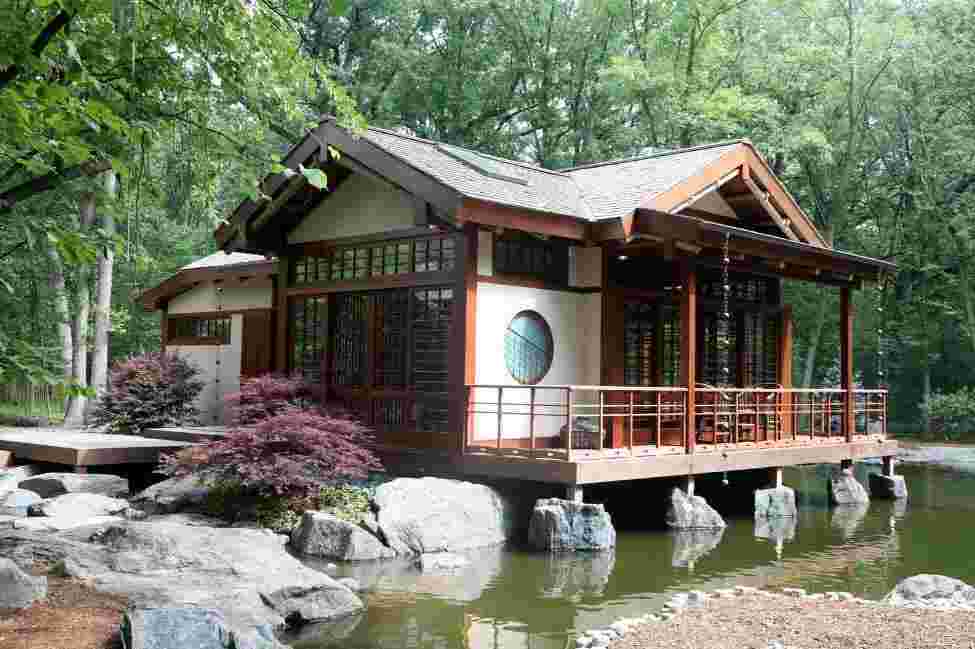Для строительства классического японского дома обычно используется дерево и камень, ткани и бумага. Конечно, современное строительство допускает использование синтетических материалов и пластика, но гораздо интереснее возвести дом, применив для этого исключительно экологически чистые и безопасные материалы. Еще один атрибут японского дома – ландшафтный дизайн приусадебного участка, дополняющий жилье. Для оформления используют сады из камней и искусственные водоемы, обилие деревьев (сосна и другие хвойные породы) и кустарников необычной формы.