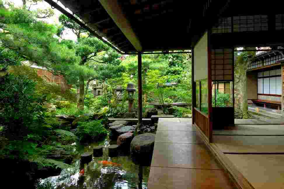 В дальнем конце сада располагается хижина для чайной церемонии – тясицу. Это небольшой аскетичный домик, напоминающий жилище мудрецов. И внешний вид, и внутреннее убранство этого строения очень лаконичны. Считается, что только так можно добиться истиной гармонии и настроиться на созерцание.