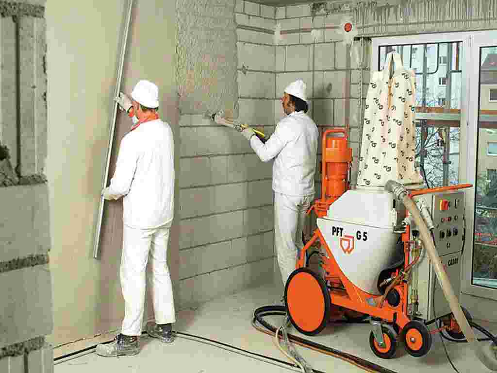 Механизированная штукатурка стен с помощью машин и станций