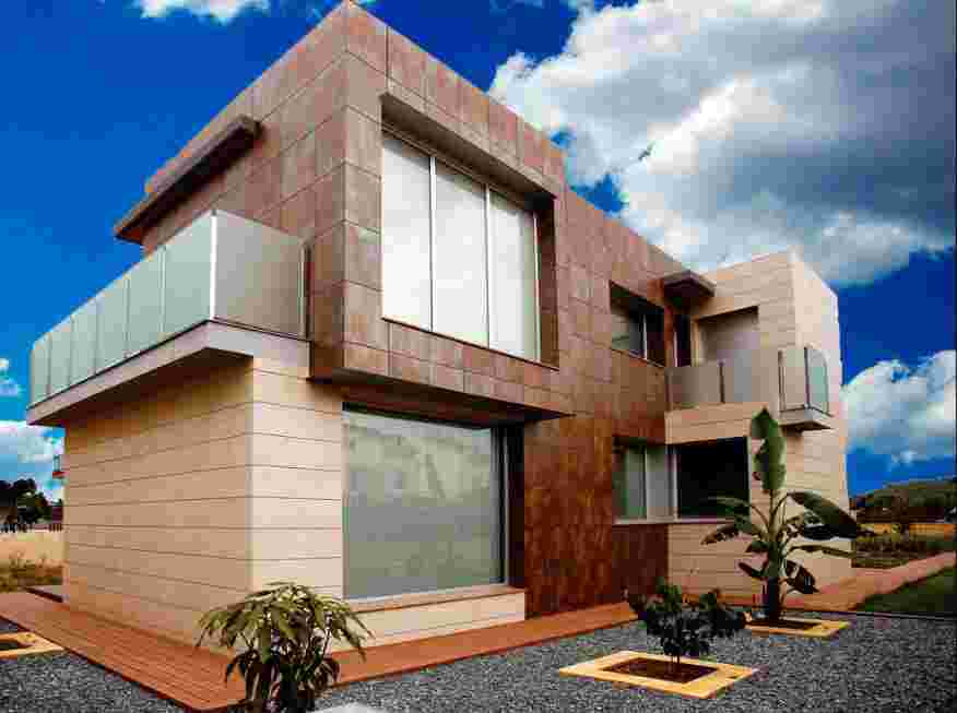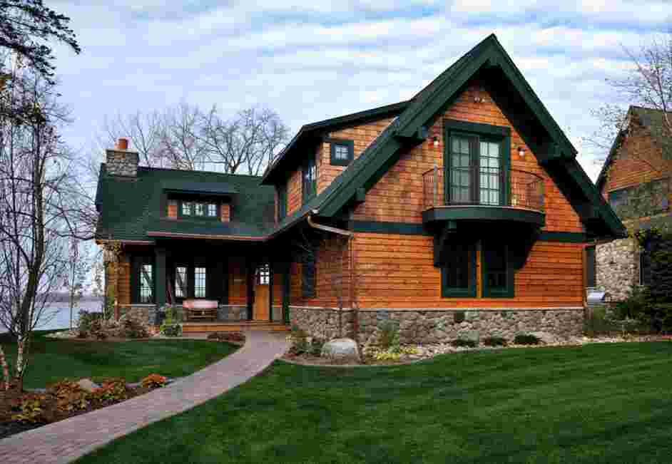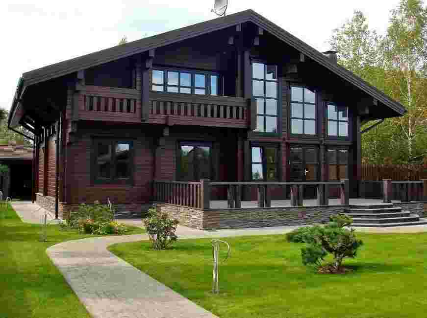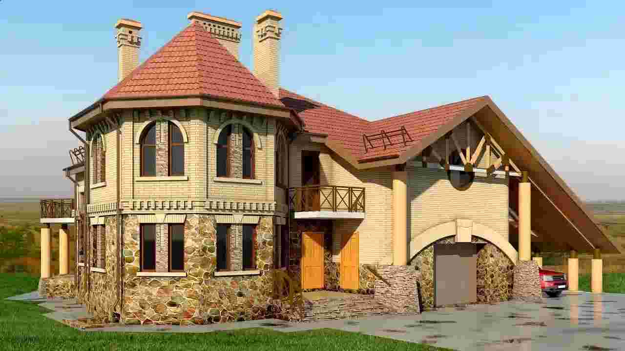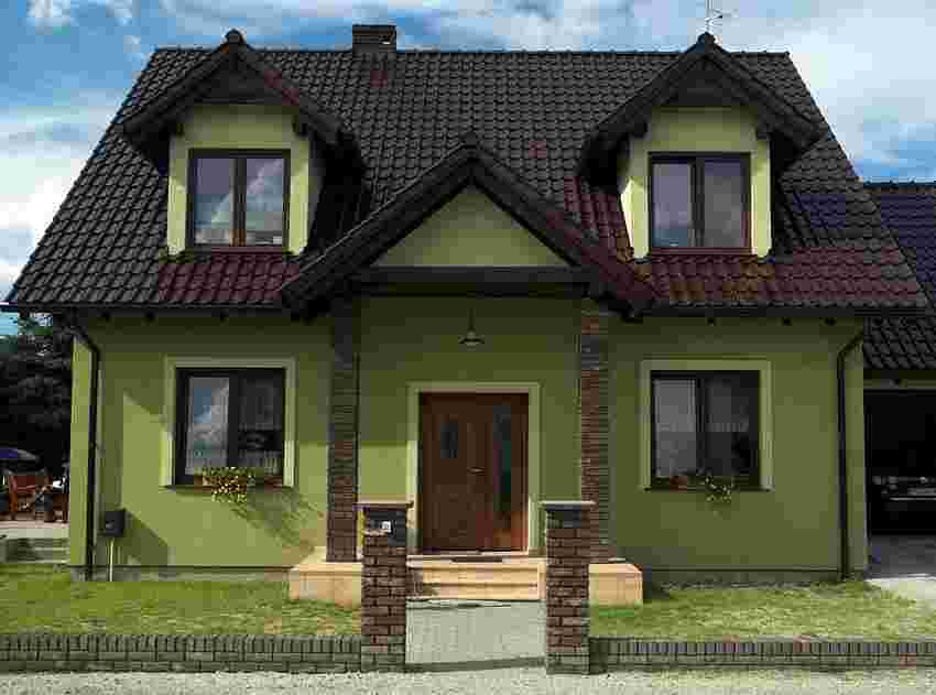 Важно не боятся экспериментировать с цветами, ведь использование контрастных решений позволит создать яркий и необычный фасад частного дома, демонстрирующий изысканный вкус хозяина жилья. Если боитесь ошибиться, то можно выбрать классический вариант, сочетая пастельные тона (коричневый и бежевый)