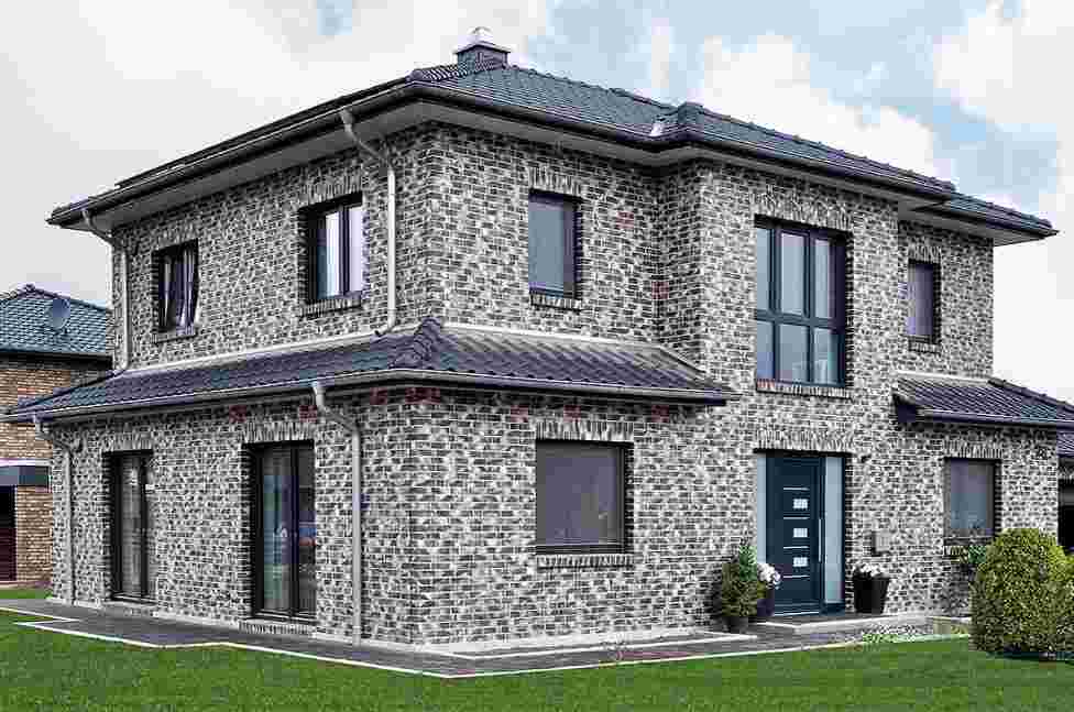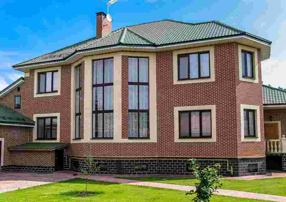 Для возведения 2- или 3-этажного дома достаточно кирпича прочности М100 или М125, но цокольный этаж лучше строить из кирпича М150-М175. Также учитывать необходимо морозостойкость кирпича, которая определяется циклами заморозки и разморозки, которые материал выдерживает без потери основных свойств. Если для теплых регионов вполне можно использовать кирпич F15-30, то для средней полосы лучше брать материал с морозостойкостью F50, а для самых суровых регионов – F100. После возведения дома ему дают некоторое время на высыхание. Кирпичные стены, как правило, отделывают облицовочным кирпичом.