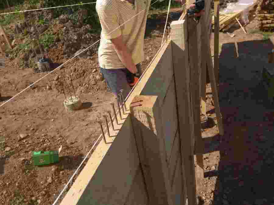 - Армирование: рифлёная арматура устанавливается вертикально и связывается между собой небольшими прутьями.
