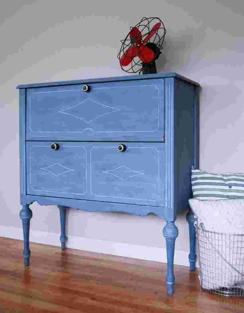 Начните с покраски труднодоступных мест, например, углублений на фасаде. Затем приступайте к окрашиванию всего предмета мебели. Наносить необходимо тонкими слоями. Обычно для полного покрытия требуется нанести краску три раза.