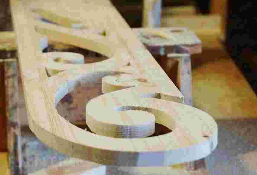 - Выполните вырезку деталей и мелких накладных элементов – для проведения работ лучше всего использовать лобзик. Сначала необходимо вырезать на доске внешние, а затем внутренние детали.
