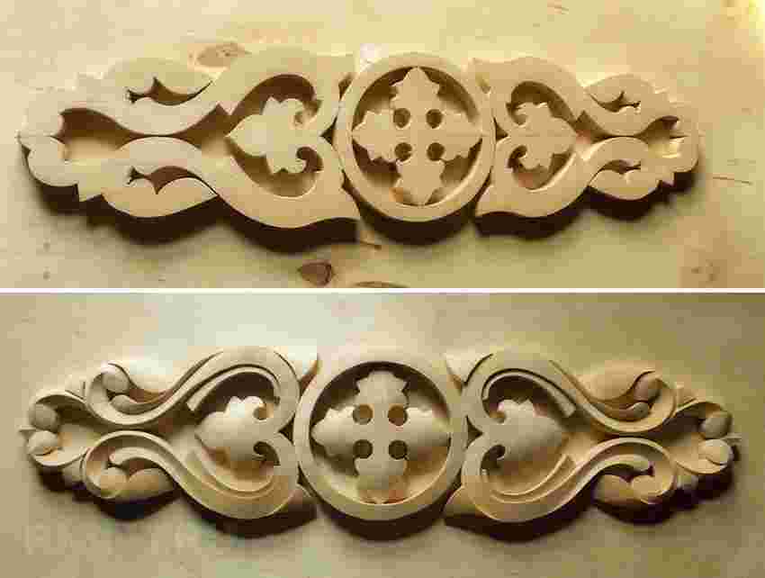 - Резные элементы лучше размещать вдоль волокон древесины. Благодаря этому можно избежать растрескивания изделий.