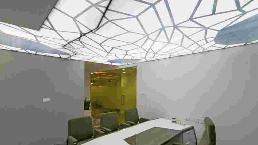 4. Потолок «парус» — разновидность «парящего» потолка, используется ПВХ пленка со стекловолокном; при помощи освещения создаются необыкновенные световые эффекты.