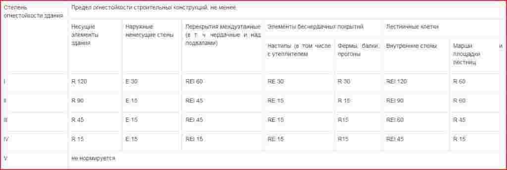 Таблица по огнестойкости объектов
