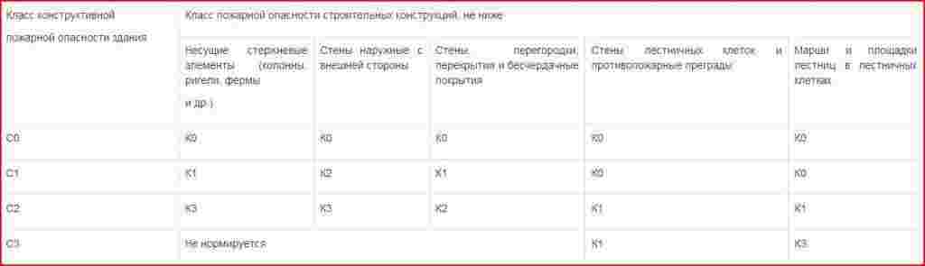 Таблица конструктивной пожарной опасности