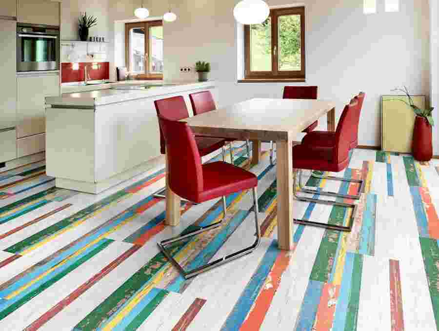 - широким спектром цветов и узоров. Он прекрасно имитирует древесину, камень, песок, мозаику, плитку, паркет.