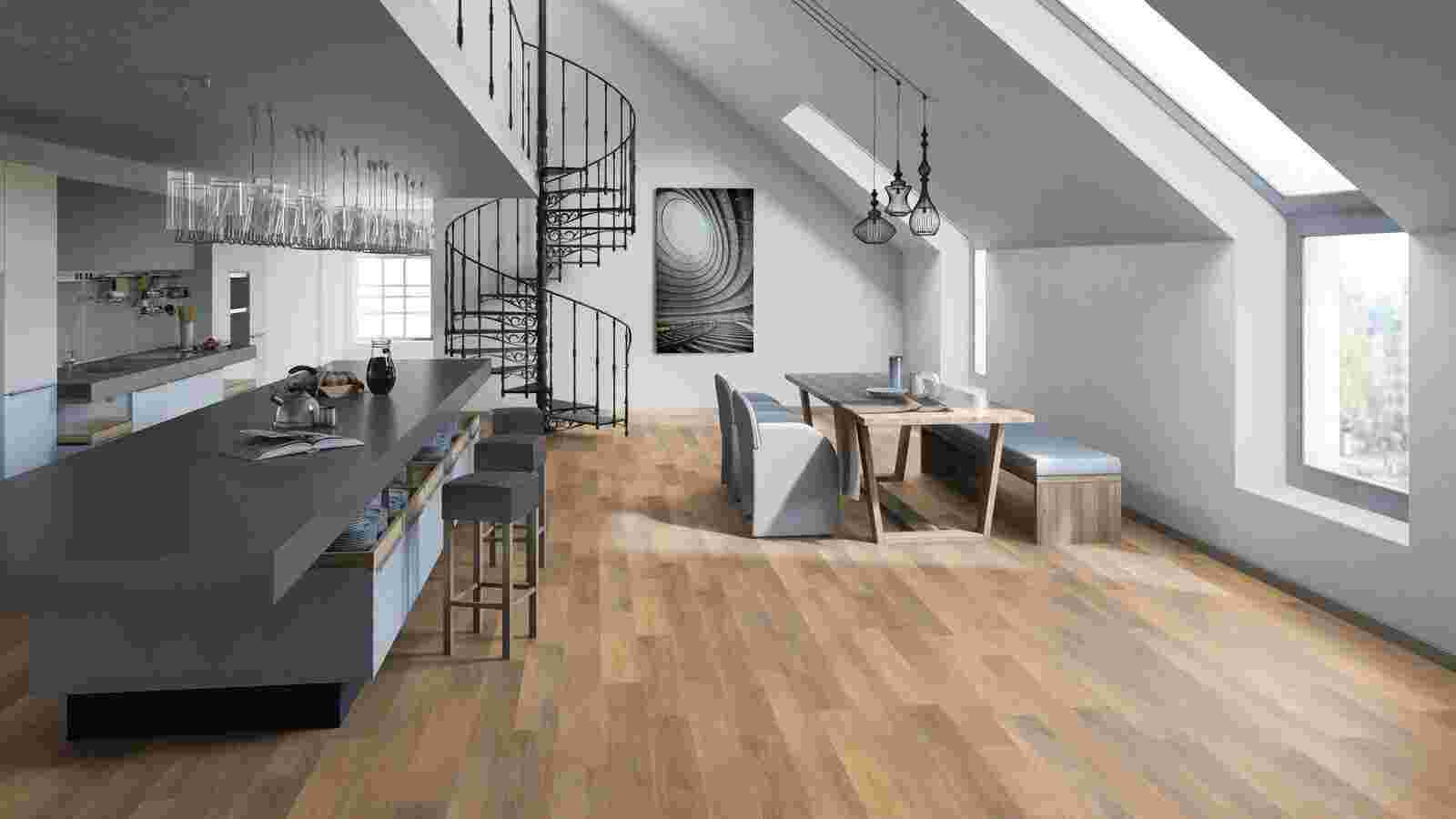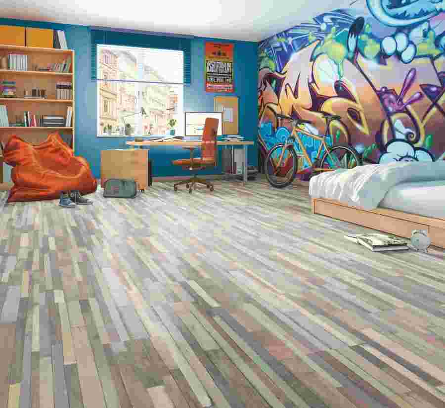 Виниловый пол является универсальным напольным покрытием. Кроме того, он влагоотталкивающий, шумостойкий и противоскользящий. Пол подходит как для ванной и кухни, так и для гостиной, спальни или детской комнаты. Выглядит почти как настоящий паркетный пол.