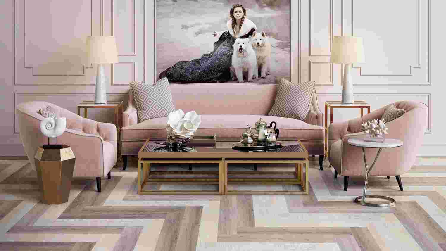 Цветовое оформление мебели. Если гостиная обставлена мебелью в темных тонах, то выделить ее поможет напольное покрытие светлого тона, например, беленый дуб. Если же мебель светлых оттенков, то пол должен быть в темных тонах. При выборе ярких атрибутов мебели пол должен быть в спокойных тонах, при скучных и простых цветах мебели пол должен это компенсировать и иметь более интересный и, может, даже художественный вид.
