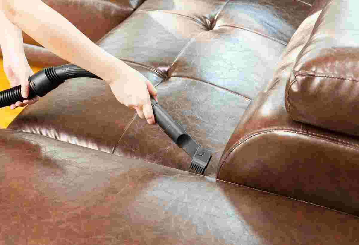 - Перетянутый диван необходимо пропылесосить, чтобы избавиться от пыли и грязи, скопившихся во время ремонта мебели.