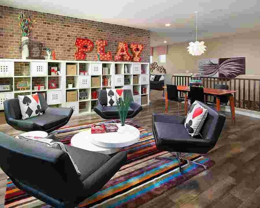 Великолепное дизайнерское решение (от Meritage Homes) — зона отдыха устроенная у кирпичной стены