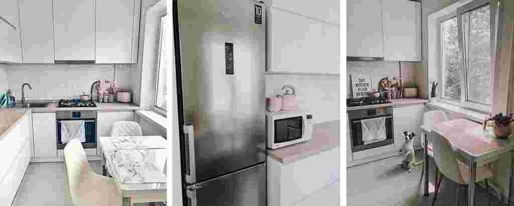 Маленькие кухни – типичное явление домов старой постройки времен СССР. Кроме того, что нужно найти место для холодильника, необходимо как-то обыграть в интерьере газовую колонку.