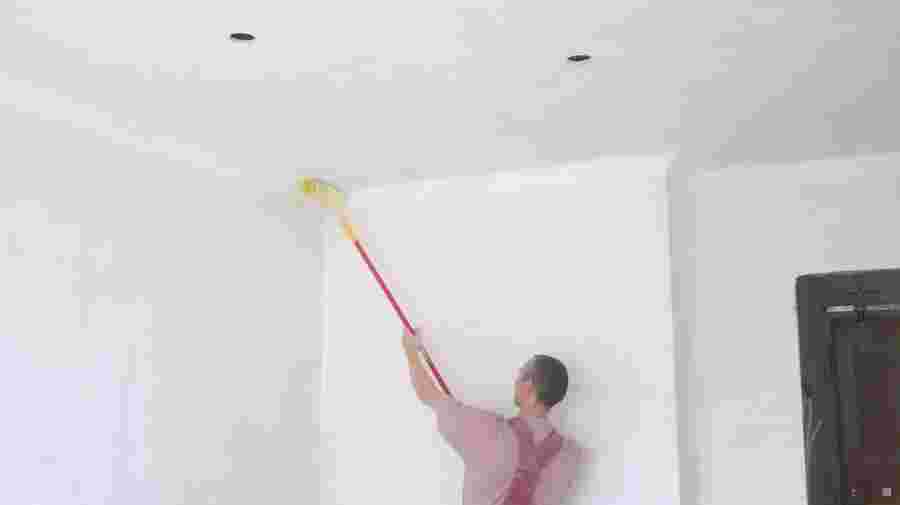 - Валик с ворсом средней длины. После короткого ворса остаются полосы, а от длинного получается шероховатая поверхность. От велюровых валиков образуются воздушные пузырьки. Поролоновые набирают мало краски, поэтому возможно появление проплешин. Для удобства лучше пользоваться телескопической ручкой.