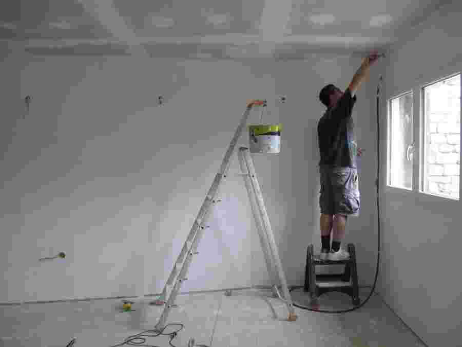 Прежде чем начнется собственно подготовка потолка к покраске, следует позаботиться о помещении. Удобнее всего, если это комната без ремонта. Тогда не нужна дополнительная защита стен от загрязнений. Иначе обои или другую отделку придется прикрывать полиэтиленовой пленкой.