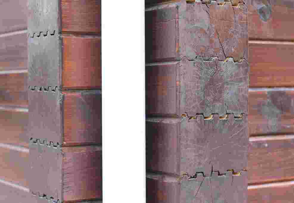После этого при соблюдении всех технологий материал в определённой степени усыхает, вследствие чего появляются трещины, размер которых непредсказуем и часто превышает допустимый. В определённый момент возникает необходимость дополнительного обслуживания: щели следует законопатить, подогнать рамы окон и двери под изменённый рельеф. Сама по себе деформация в силу погодных явлений обычно не пугает собственников, но для некоторых, и это можно понять, такой вид дома кажется несколько не эстетичным.