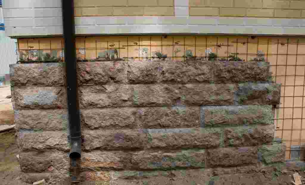 Поскольку при его производстве весь материал пропитывают красителями, он со временем не теряет цветовых качеств, не поддается агрессивному воздействию окружающей среды, что особенно важно для фундамента