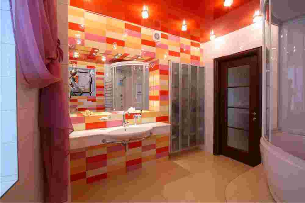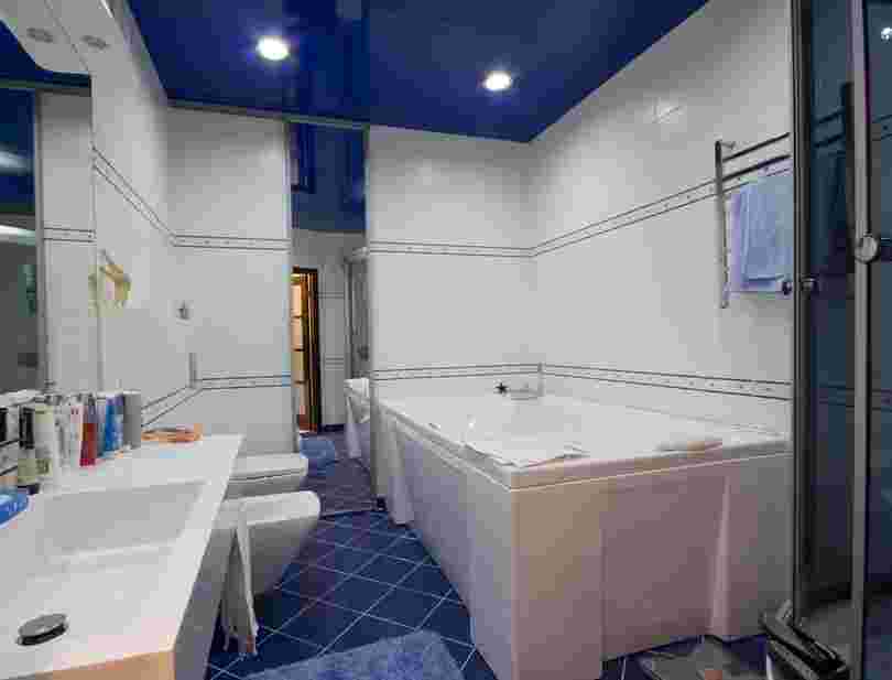 Очевидно, что можно — и вы вскоре убедитесь в том, что даже нужно. Правда, нужно сделать серьезную оговорку: для использования подходят только натяжные потолки из ПВХ, которые еще часто называют пленочными. Они изготавливаются из поливинилхлоридной пленки и обладают всеми необходимыми характеристиками, чтобы без всяких проблем эксплуатироваться в непосредственной близости от источников воды и при перманентной влажности выше нормы.