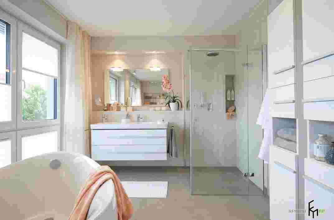 Большая площадь комнаты открывает множество возможностей с точки зрения выбора цветовой палитры, расстановки сантехники и мебели, использования объемных, фактурных способов отделки. Можно сказать, что оформление просторной ванной комнаты ограничивается только вашей фантазией, дизайнерскими идеями и финансовыми возможностями.