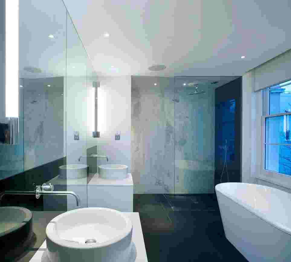 В просторных помещениях, где не нужно заботиться об экономии каждого квадратного сантиметра, помимо традиционной для ванной комнаты сантехники можно установить, по желанию жильцов, дополнительную раковину, биде, душевую кабину открытого или закрытого типа, систему хранения вещей и предметов, необходимых для комфортного проведения водных процедур, камин, туалетный столик или оборудовать целый будуар.